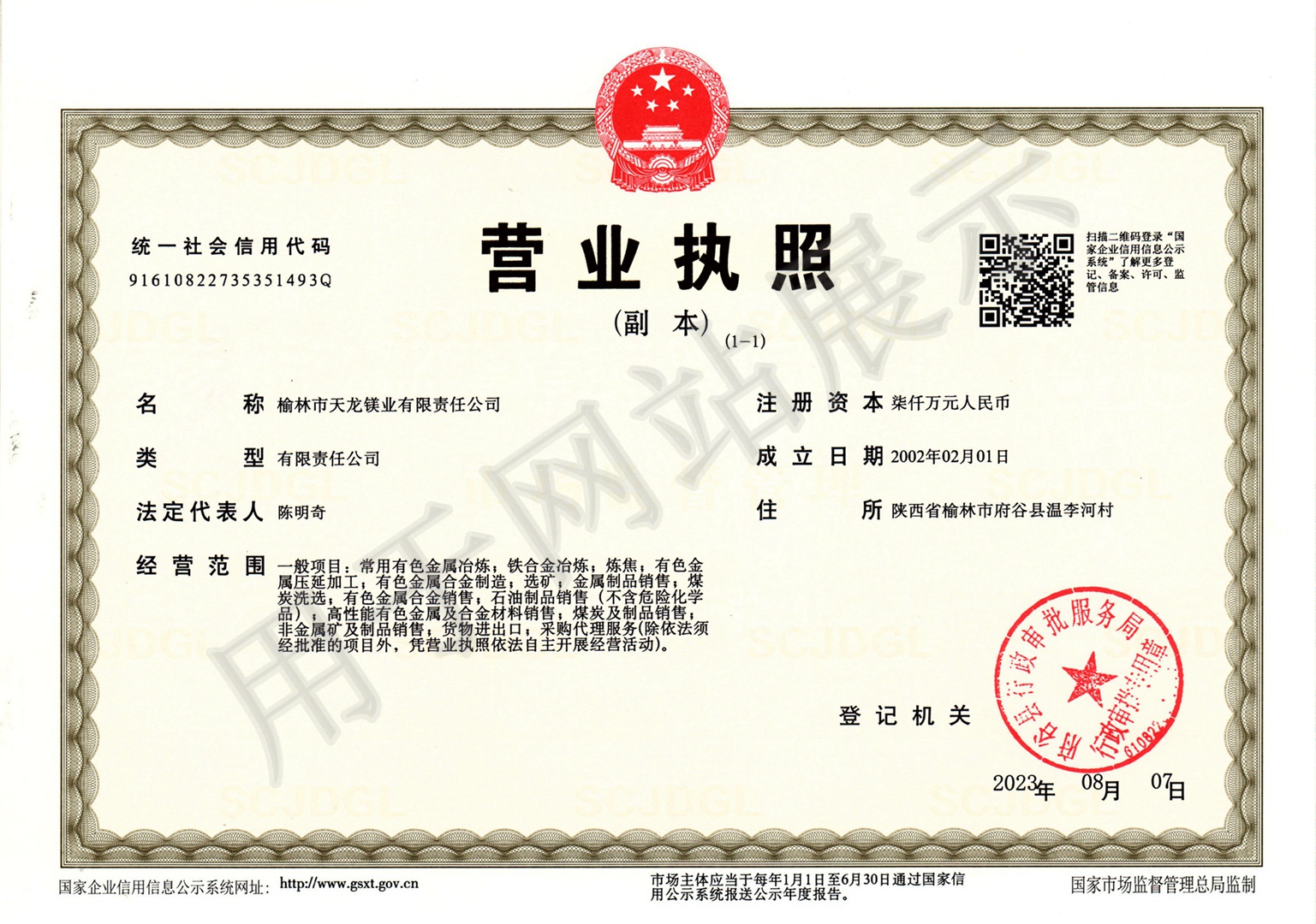榆林市天龍鎂業有限責任公司(簡稱天龍公司)成立于2000年,是一家集金屬鎂、硅鐵、蘭炭生產銷售為一體,府谷最早從事金屬鎂生產的民營企業,公司位于國家能源重化工基地神府煤田開發區腹地的陜西省榆林市府谷縣黃河工業區,占地200畝,現已建成年產4.25萬噸金屬鎂,配套年產50萬噸蘭炭、2.5萬噸硅鐵的循環利用產業鏈。公司總資產6億元,年可實現總產值12億元。